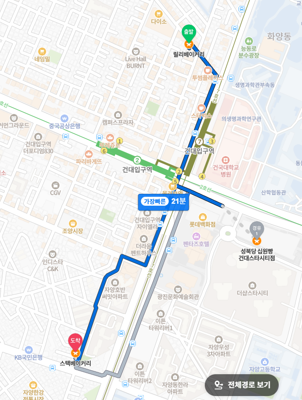 건대입구 주변에 추천하고 싶은 다른 빵집이 있다면 댓글로 알려주세요! 매일 서울 지하철역 중심의 빵지순례 코스를 소개합니다 저 도보 동선은 지하철역 기준입니다. 아시다시피 건대역은 유동인구가 많은점 알고계시죠?😊